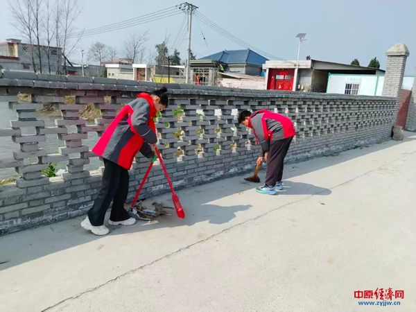 活动中,同学们身着统一校服,手持扫帚、簸箕等清洁工具,沿着乡村道路认真清扫路面垃圾、捡拾路边杂物。大家分工协作,有的弯腰捡拾烟头、塑料袋,有的仔细清扫路面尘土,还有的清理墙边杂草,不放过任何一处卫生死角。在田间小路旁、河道围栏边,都能看到同学们忙碌的身影,他们不怕脏、不怕累,用双手为家乡环境“美颜”。