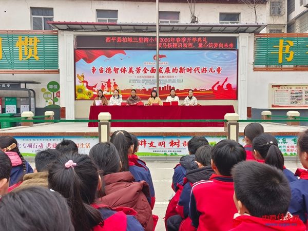中原经济网驻马店讯(记者 杨晓 全媒体记者 冯占华 通讯员 刘亚琼)策马扬鞭启新程,童心逐梦向未来。为明确新学期奋斗目标,总结学习经验,激励全体师生凝心聚力、砥砺前行。2026年3月13日上午9:00,西平县柏城三里湾小学2026年春季开学典礼在学校操场举行。全体师生齐聚一堂,统一思想、明确目标,携手同心共迎新学期。