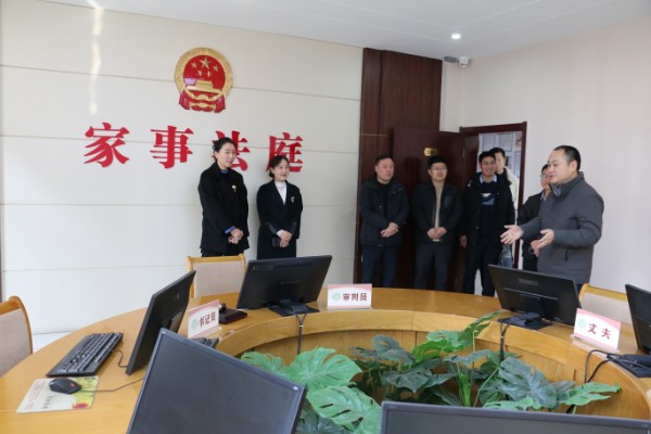 南召县人民法院一行人首先来到五里桥人民法庭,先后实地参观了该法庭的家事调处中心、亲情教育室、温馨时光室、适老型诉讼服务指导中心等功能区域,细致察看各区域布局、配套设施及日常运行情况,详细询问该法庭在“枫桥式人民法庭”创建、家事纠纷化解等方面的工作思路与实践成效。法官张啸宇详细讲解了“细语和风”化解家事纠纷工作法、心理疏导化解家事纠纷等特色做法,为兄弟法院相关工作开展提供了鲜活的实践样本。参观过程中,南召县人民法院同仁边走边看、认真记录,对西峡县人民法院的创新服务举措和成效给予高度肯定。