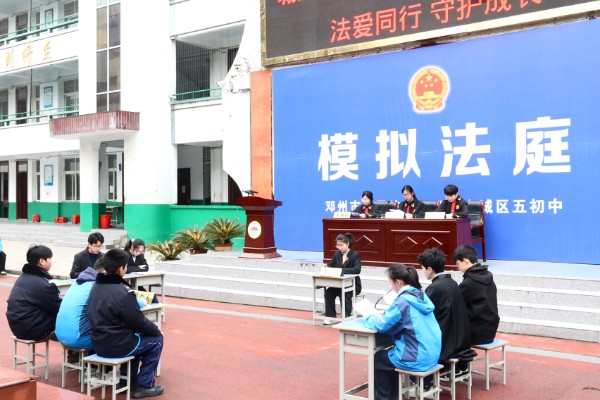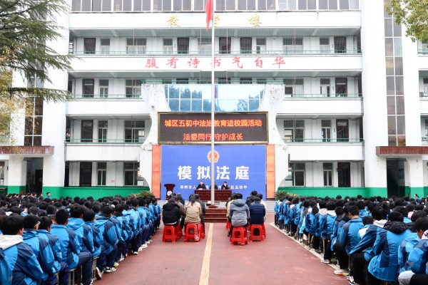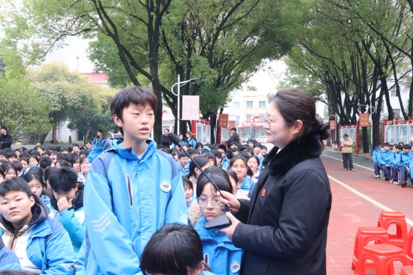 为深入贯彻落实未成年人保护工作部署,进一步加强青少年法治宣传教育,3月16日上午,邓州市人民法院走进邓州市第五初级中学,开展“法爱同行 守护成长”主题法治宣传活动,以生动的“法治第一课”拉开新学期普法序幕。活动通过沉浸式体验、互动式问答、警示性教育等形式,为全校1300余名初中生送上了一堂内容丰富、形式生动的法治教育课。