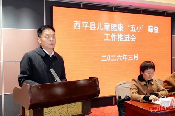 中原经济网驻马店讯(记者 杨晓 全媒体记者 冯占华)3月17日上午,西平县儿童健康“五小”筛查工作推进会在迎宾馆三楼会议室召开。县政府副县长龙岩、县卫健体委主任朱丽娜、县教育局局长陈亮、县民政局局长王晓杰、县残联理事长王全周、县教育局分管领导、县卫健体委分管领导、柏城、柏亭、柏苑、开发区中心校校长、城区公立幼儿园、中小学负责卫生保健工作的副校(园)长、各乡镇卫生院院长、柏苑、柏城、开发区卫生服务中心主任、县妇幼保健院相关负责人参会,会议由县政府办副主任邓传宝主持。