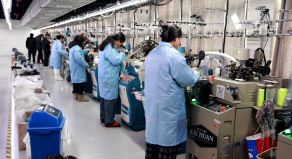 河南金硕针织有限公司负责人钱巧灵说:“咱厂现在是100多个工人,年产袜子1000多万双,都是外贸订单,销往日韩的,目前不愁订单,订单已经排到5月份了。”