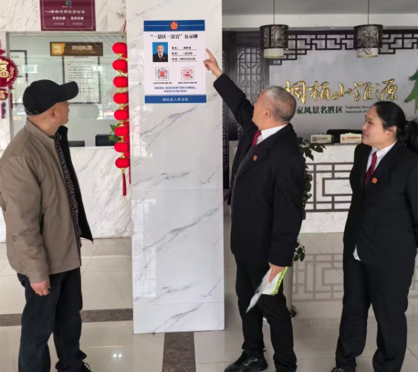 活动现场,桐柏县人民法院在辖区桐柏山淮源风景名胜区、桐柏革命纪念馆两大4A级景区,同步设立景区法律服务站,并在游客服务中心、景区服务大厅等群众易接触、视线集中的醒目位置,统一悬挂“一景区一法官”法律服务公示牌,实现景区法律服务全覆盖、无死角。