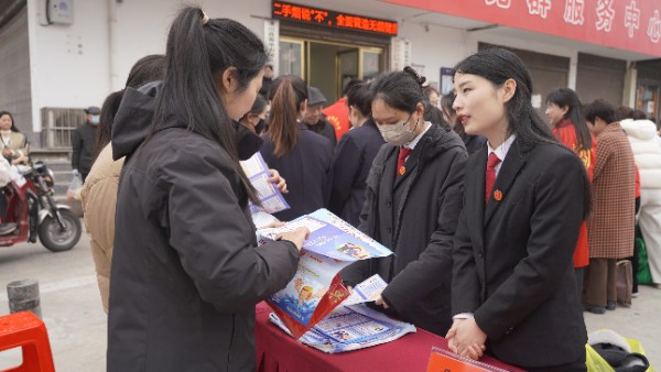 春意盎然,法润人心。为进一步增强广大妇女的法律意识和维权能力,营造全社会尊重和保障妇女权益的良好氛围,3月19日上午,潢川县人民法院组织干警走进文庙社区,积极开展潢川县“三八”妇女维权月普法宣传活动,将法律知识和维权服务送到群众“家门口”。