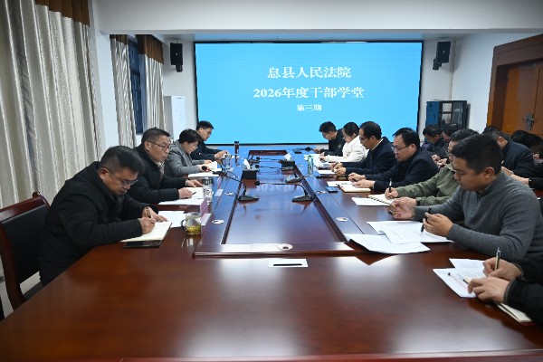 3月19日,息县人民法院召开2026年第三期干部学堂,在家的院班子成员、党支部书记、部门负责人、员额法官及法官助理参会。