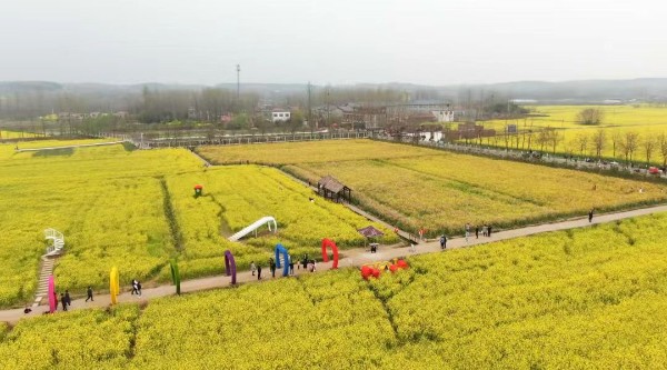 3月中旬到4月上旬,漫步新集村田野,连片油菜花田与豫南民居相映成趣,青瓦白墙、木质栈道穿插其间,蜜蜂蝴蝶在花间翩跹。微风拂过,花浪翻滚,清甜花香沁人心脾。这里没有喧嚣人潮,只有乡野静谧与自然生机,无论是漫步花田、打卡拍照,还是静坐观景台远眺,都能沉浸式感受春日美好。赏花之余,在新集村还能体验多种传统民间技艺,选购当地地道农产品。