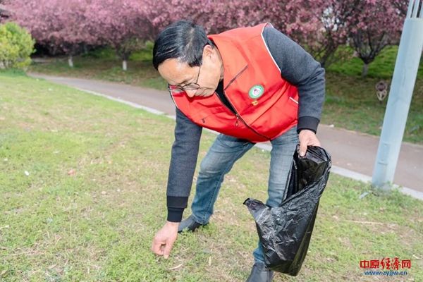 随后,大家还积极开展了“学雷锋做好事”捡拾垃圾公益活动。道路边、树林间、草地上,到处都有他们的身影,大家不怕脏、不怕累,每个人的垃圾袋中都是“战果累累”。虽然累得汗流浃背,但是看到干净整洁的河堤,大家都露出欣慰的笑容。