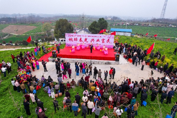 为丰富游客体验,活动现场还精心安排了民谣弹唱、传统舞蹈、光山花鼓戏等精彩文艺表演。悠扬的歌声、曼妙的舞姿、地道的乡音回荡在山川桃林之间,为烂漫花海注入了浓郁的文化气息。