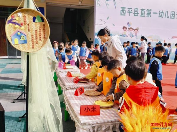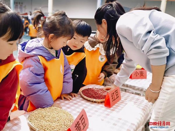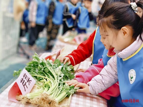 仪式结束后,孩子们在老师的带领下,兴致勃勃地参观了“农作物认知区”。这里陈列着多种蔬菜和农作物的实物——嫩绿的青菜、圆滚滚的南瓜、金灿灿的小米……孩子们通过看一看、摸一摸、闻一闻,近距离认识了生活中常见的蔬菜。老师们顺势讲解它们的生长习性和营养价值,孩子们惊叹不已,纷纷说道:“原来我们吃的蔬菜是这样长大的!”