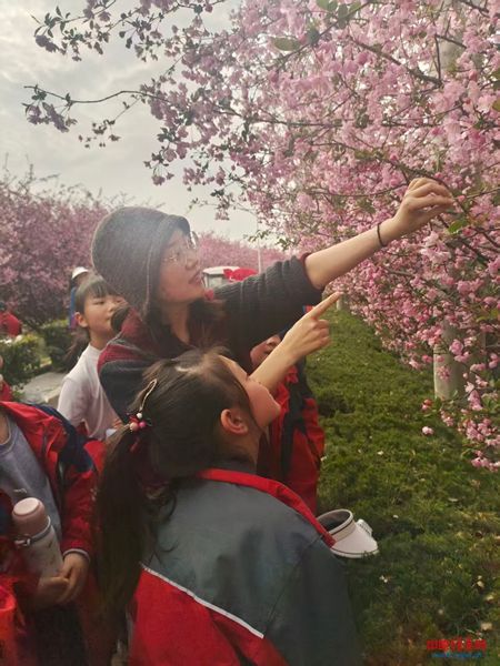 随行的老师们化身自然导师,一边叮嘱同学们文明赏花、爱护花草树木、不攀折花枝,一边结合眼前景致,生动讲解海棠的生长习性、花卉知识以及春日自然常识,将自然教育、美育教育融入实践之中。同学们认真聆听,积极提问,在轻松愉悦的氛围里学到了课本之外的知识,真切感受到大自然的神奇与魅力。