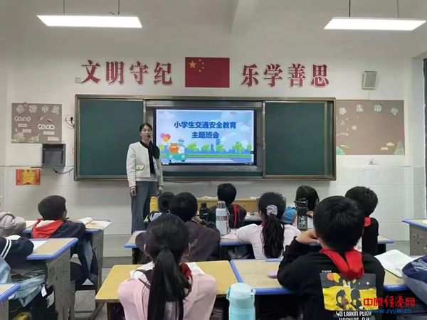 为让学生深刻认识交通违法的危害,班主任结合触目惊心的交通事故数据和典型案例,剖析了中小学生交通事故的常见诱因,警醒学生摒弃交通陋习,时刻绷紧交通安全弦。在互动环节,老师通过交通安全知识问答、齐唱交通安全拍手歌的形式,让学生在趣味互动中巩固知识;班会最后,全体学生进行交通安全宣誓,立志做文明交通的宣传者和践行者。