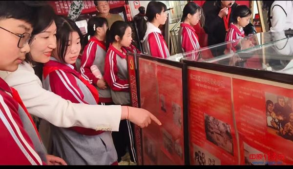 踏入复兴博物馆,庄严肃穆的气息扑面而来。馆内陈列的丰富文物、珍贵历史图片,如同一本立体的鲜活史书,将那段波澜壮阔的革命岁月缓缓铺展。李东海老师早已等候在馆前,为同学们深情讲述本土红色故事:从毛泽东、刘少奇、李先念等老一辈革命家驻足西平的足迹,到陈赓将军在焦庄祝王寨、金刚寺战役中指挥作战、歼灭敌军九千余人的辉煌战绩,一段段鲜活的历史让同学们屏气凝神、听得入神,红色文化的种子在心底悄然萌发。