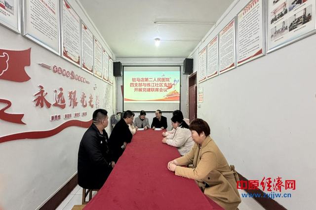 中原经济网驻马店讯 (记者 杨晓 全媒体记者 晨曦 通讯员 马俊潇)为深化党建引领基层治理,推动优质医疗资源下沉,切实把党建优势转化为服务群众的实际效能,3月30日,驻马店市驿城区南海街道练江社区与市第二人民医院第四党支部在社区党员活动室召开党建联席会,双方党支部书记、党员代表齐聚一堂,共商联建路径、共谋服务民生新举措。