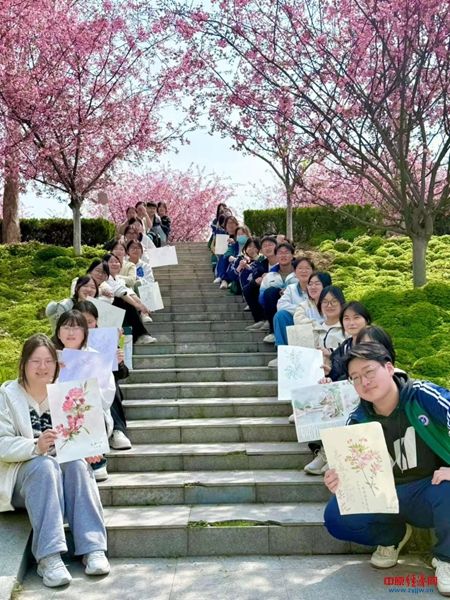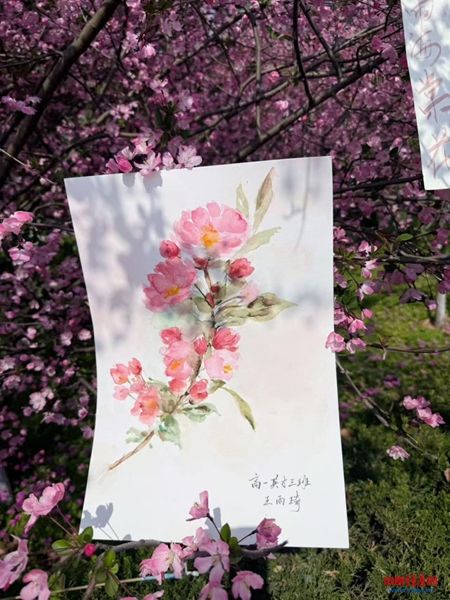 中原经济网驻马店讯(记者 杨晓 全媒体记者 冯占华 通讯员 赵大磊)“笔蘸春澜·海棠入画”凤鸣书画社写生活动。