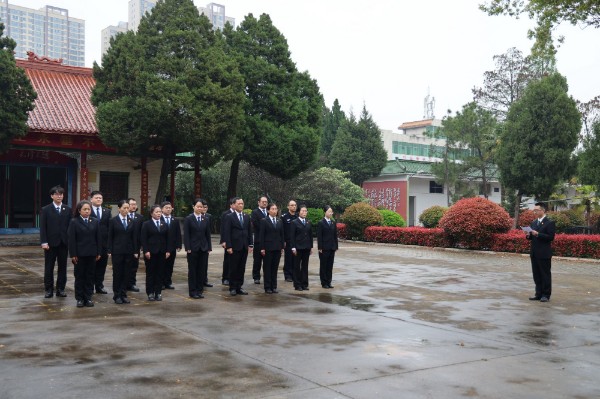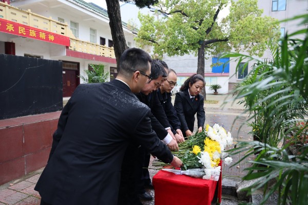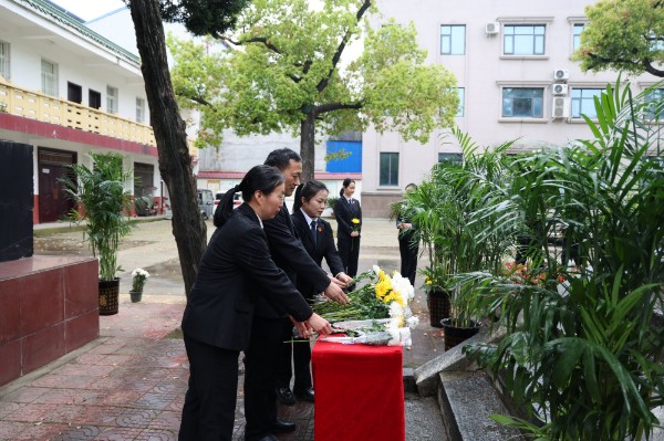 下午3时,天空下起了淅淅沥沥的小雨,烈士陵园内翠柏青松掩映,庄严肃穆。干警们身着制服、整齐列队,面向革命烈士纪念碑肃立。院党组成员、政治部主任王瑞朋回顾革命先烈的光辉业绩,号召全体干警铭记历史、珍惜当下,将崇敬之情转化为履职尽责、公正司法的实际行动,传承红色基因,坚守法治初心。