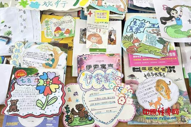 活动期间,形式多样的读书活动在校园内有序开展。班级层面,读书分享会热闹非凡,学生们纷纷分享《中国神话故事》《昆虫记》等书籍的感悟,或绘声绘色讲述书中情节,或畅谈阅读收获,展现了新时代少年的阅读风采;读书成果展示评比中,同学们精心设计、巧手绘制,将读书心得、名言警句融入作品,每一幅作品都彰显着对书籍的热爱。