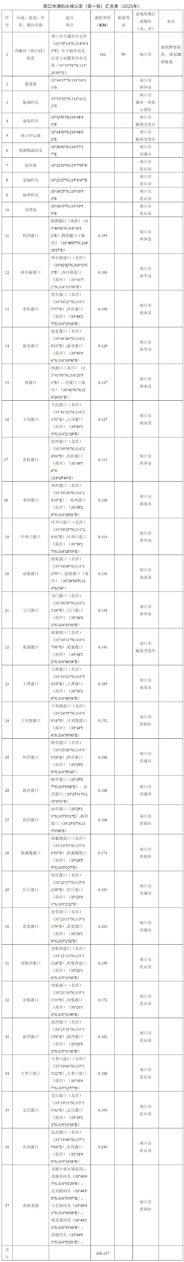 据悉,首批公布的内河通航水域主要涵盖沙颍河(周口段)航道及航道上9个港口码头、县级人民政府批准设立的26道渡口和淮阳龙湖水库及库区5个码头等。(王士伟)