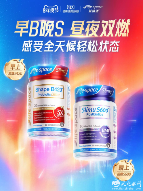 搭配lifespace益倍适超燃S600益生菌,还能实现“早B晚S”的黄金组合:白天用B420开启3倍超燃模式,加速热量消耗与代谢运转;晚上用S600延续代谢活力,优化夜间肠道修复与脂肪分解,打造24小时燃燃永动机,让轻盈状态全天候在线。