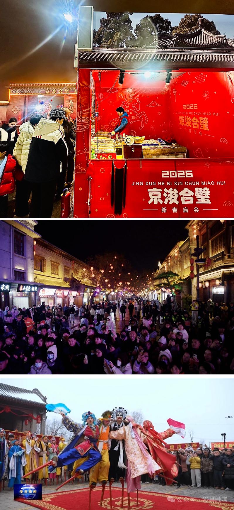 2026年新年,一场跨越千里的文化盛宴在河南鹤壁浚县古城精彩上演。为期近一个月的“京浚合璧”新春庙会正在浚县古城西门火热进行,北京老字号、特色京味美食与浚县千年社火民俗交相辉映,为游客带来了一场别开生面的文旅体验。